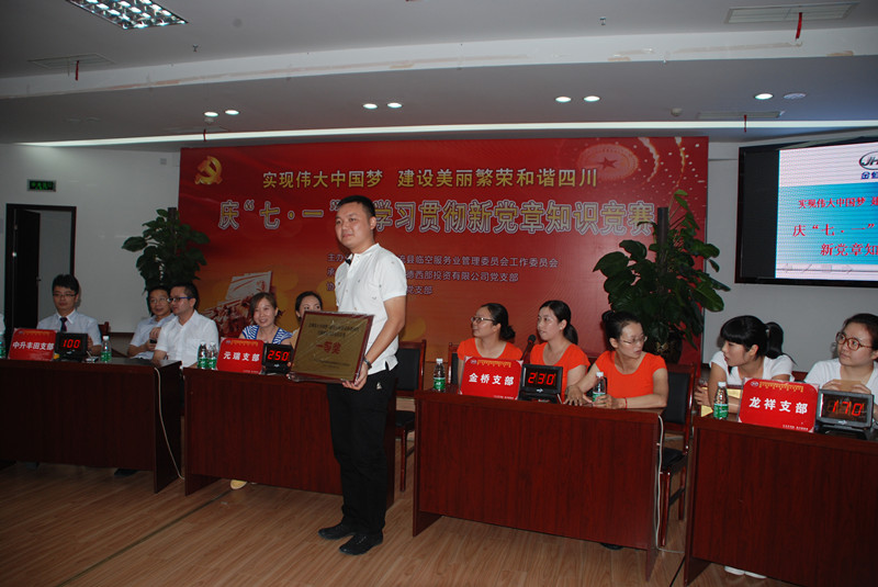 结合主题教育活动的开展,管委会提出园区企业要按照“三结合”原则扎实开展主题教育活动,即:将主题教育活动与企业发展目标相结合,与企业员工成长相结合,与企业个性文化相结合。管委会园区对口联系企业通过横幅标语的悬挂营造学习气氛,并在金恒德会议中心开展“庆七一•中国梦”知识问答竞赛。(各党支部组队参赛:1,中共双流县临空服务业管委会党支部. 2,中共四川金恒德投资有限公司党支部. 3,中共成都科龙神龙汽车销售公司党支部. 4,中共四川元瑞投资实业有限公司党支部. 5,中共成都中升丰田汽车销售服务有限公司党支部. 6,中共成都龙翔投资实业有限公司党支部. 7,中共四川金桥物流有限公司党支部。)全体干部职工参与该项活动。